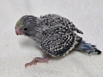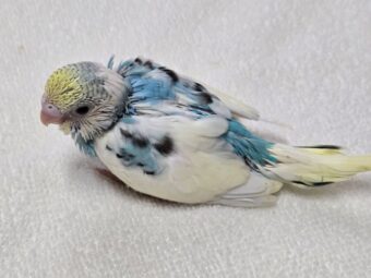 セキセイインコのヒナたちです。3羽ともにレインボーの兄弟です。