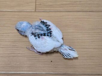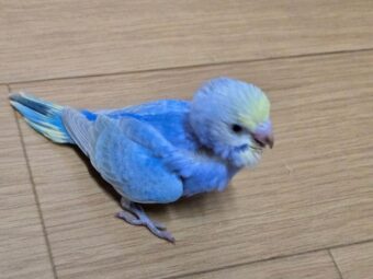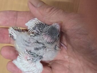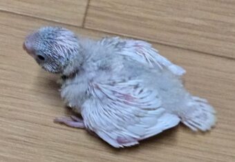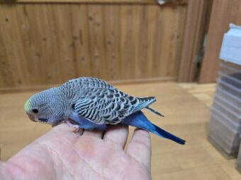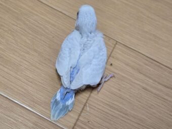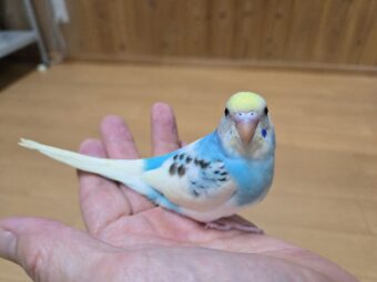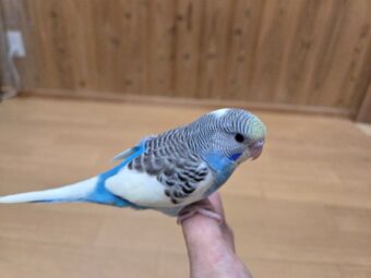 画像2は、ホワイトのハルクイン系の子です。羽にうっすらとグレーがかったスバングルが入ります。お腹は薄いブルーです。