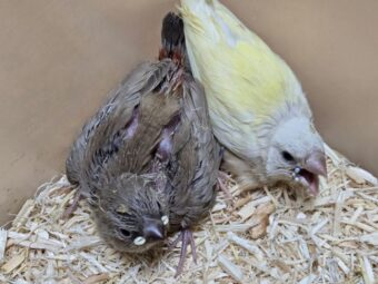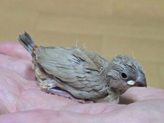手乗りのダイヤモンドフィンチ(シナモン)とコキンチョウ(イエロー)のヒナたちです。